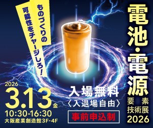 ゼネラル株式会社は、2026年3月13日(金)に、大阪産業創造館3F・4Fで開催されます”電池・電源要素技術展2026”に出展を予定しております。