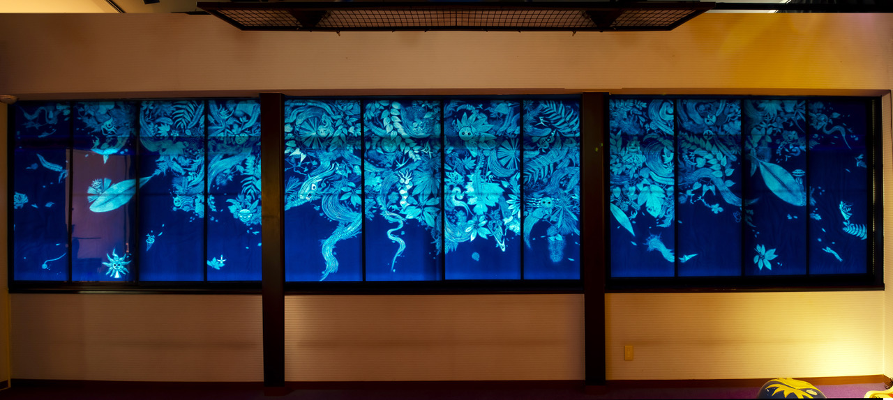 齋藤氏は「THIS PLACE THIS TIME -この場所 この時間-」を制作コンセプトに掲げ、その土地の植物と日の光を活かした透過表現を追求されています。そのような考えのもと、光によって見え方が変化するゼネラルのカーボン紙の特性が齋藤氏の制作意図と重なり、本作品に採用されました。